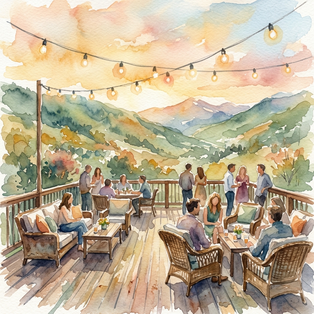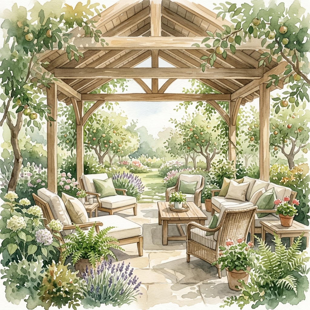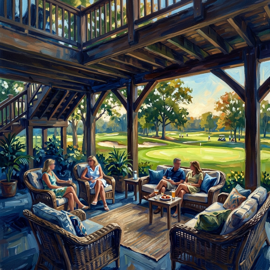 The Orchard Pavilion is an exclusive covered lounge reserved for Apple Mountain Country Club members. Designed as a calm and comfortable retreat, this space offers a relaxed environment to unwind throughout the day.
